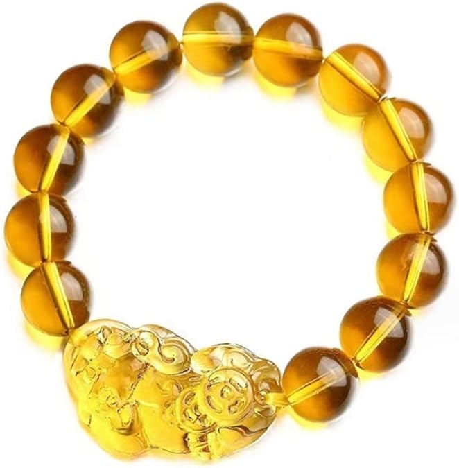 10mm Yellow Crystal Bracelet Men Women Pixiu Bracelet Jewelry