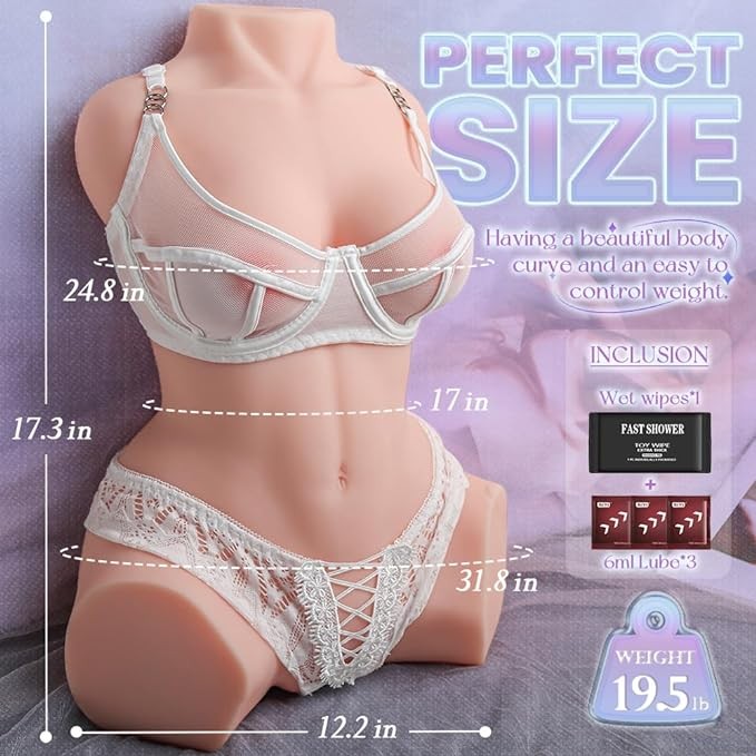 19.5LB Sex Doll for Male Masturbator with Soft Breast Realistic Vagina & Anal Sex, Handy-Sized Female Torso Boobs Pussy & Ass Sex Toy for Men, 3-in-1 Adult Love Doll Toys for Masturbation
