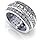 With diamonds set all the way around the ring, this eternity style features three rows of beautiful diamonds. The diamonds on the side are round and secured with a prong setting. The middle row has large size princess cut diamonds in a channel setting, with the two outer rows containing a smaller size diamond.