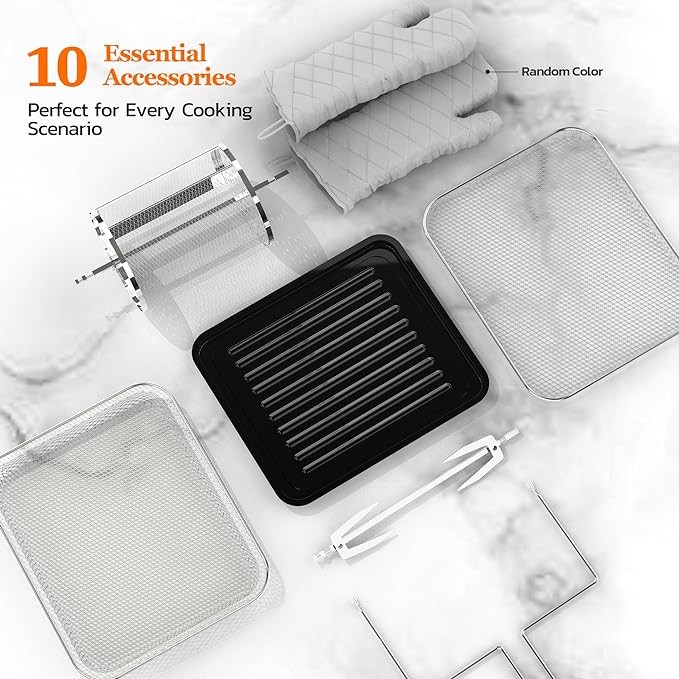 Air Fryer Oven, 10-in-1 20QT Airfryer Oven with Visible Cooking Window, Large Air Fryer Toaster Oven Combo with Recipes & 10 Accessories, ETL Certification