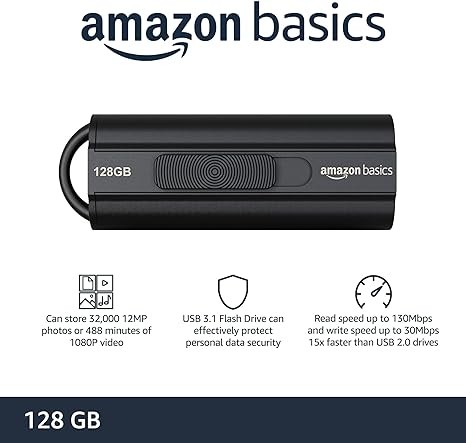Amazon Basics 128 GB Ultra Fast USB 3.1 Flash Drive, Black