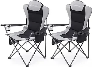 Aohanoi 2-Pack Camping Chair for Heavy People, Outdoor Folding Camping Chair with Cup Holder and Cooler Bag for Outdoors Support Up to 300 lbs (2 Pack, Black)