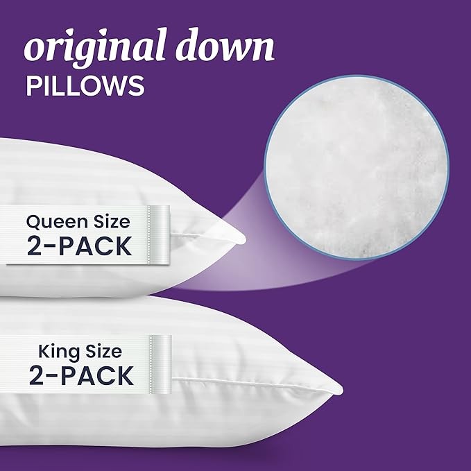The Beckham Home Collection Original Down Pillow features a premium 650 down fill, with a 450 thread count shell for plush, comfortable support in any position.