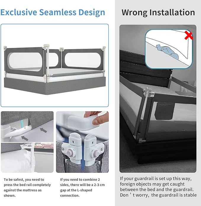 Bed Rails for Toddlers, Extra Tall 32 Levels of Height Adjustment Specially Designed for Twin, Full, Queen, King Size - 2023Upgrade Model Safety Bed Guard Rails for Kids (1 Side:78.74"(L) ×27"(H))