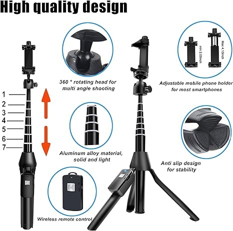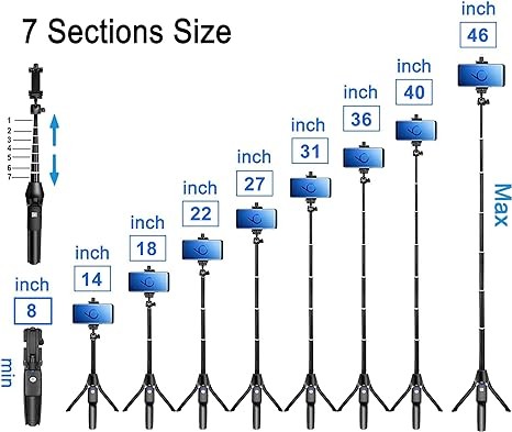 BZE Selfie Stick, 46 inch Extendable Selfie Stick Tripod,Phone Tripod with Wireless Remote Shutter,Group Selfies/Live Streaming/Video Recording Compatible with All Cellphones