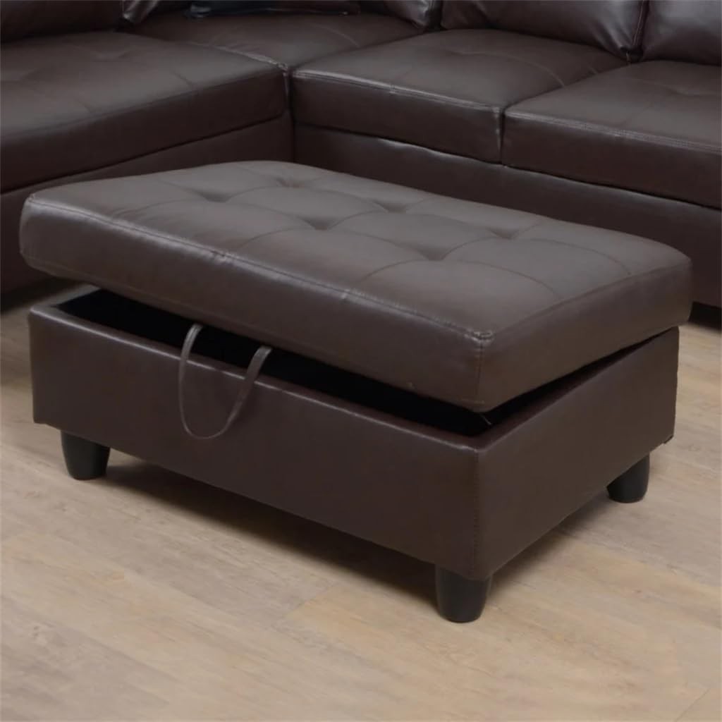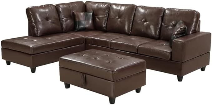 High-density foam ensures maximum relaxation as you lounge on the sofa. Sectional sofa overall approximately dimension: 103" x 73.5" x 32" high, Storage ottoman approximately dimension: 34" x 24" x 15.5"high Sofa upholstery material: Microfiber and faux leather Package included:2-piece sectional sofa set with a storage ottoman, 2-picese square pillows not too many miscellany lines, only a few groups of lines, outline a comfortable sofa has a very fashionable sen This stylish sofa is for living rooms , offices, conference rooms and bedrooms. It is very comfortable for both sitting and reclining.