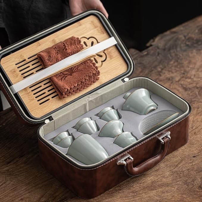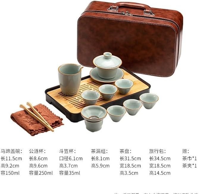 Ruyao Travel Tea Set Outdoor Portable Tea Pot. Water flows out like a pillar, but when it stops, it is swift and efficient. 304 stainless steel filter screen, with and dense filter holes to block tea , making it easy to brew tea. The shape is round and elegant, making it comfortable to hold. Melamine water storage tea tray with hollowed out surface technology for easy drainage. Material: Porcelain Packaging: Tea set * 1 (excluding other display products) Features: Transparent and round, thickened and durable, with a warm and smooth feel, deeply loved by tea enthusiasts Notes: Due to differences in display and lighting effects, the actual color of the product may slightly differ from the color shown in the picture. Thank you! Due to manual measurement, please allow a deviation of 1-2 centimeters.