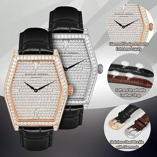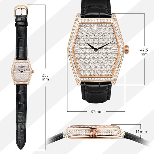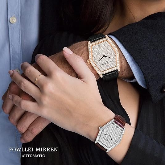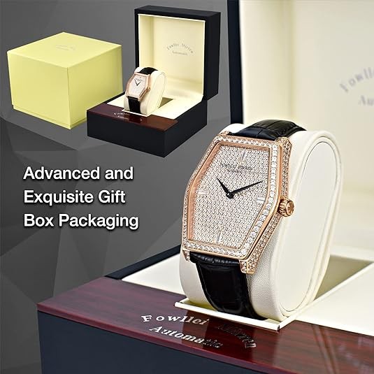 Diamond Wrist Watch for Women, Mechanical Automatic Watch Diamond Wrist Watch for Men Unisex Analog Barrel Watch Luxury Fashion Gift Waterproof
