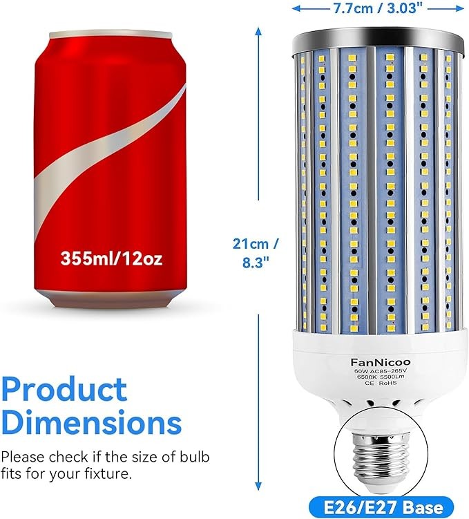 | special function | ✔ 360° beam angle & ✔ Shatterproof, ✔ Eye-friendly& ✔ Flicker-free & ✔ Instant on & ✔ Long-lasting, ✔ 36,000 hour lifespan & ✔ 60 Watts (500 W equivalent), ✔ Energy efficient & ✔ Highly efficient, ✔ Super bright 5500 lumens |