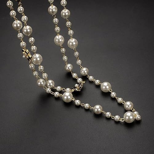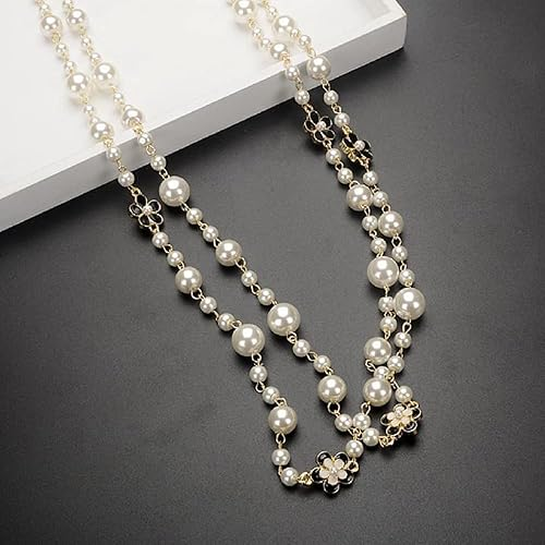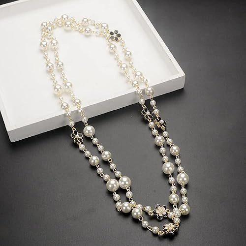 Fashion Design Chic Long Imitation Pearl Clover Flower Strand Necklace for Women