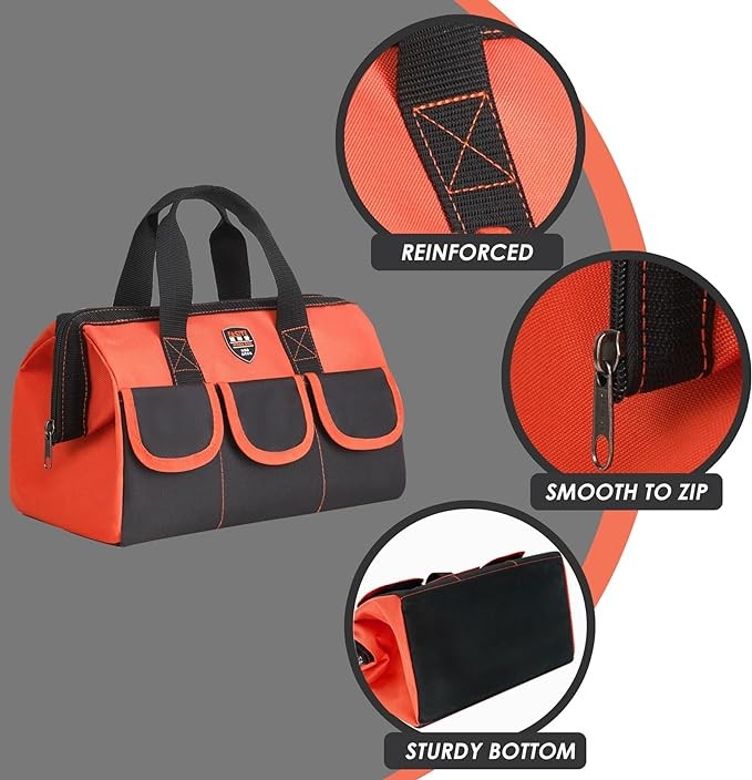 FASITE 12 in small tool bags for men, waterproof tool tote tool bags for electricians, canvas tool bag with wide mouth tool bag(2Pack)