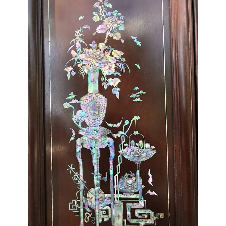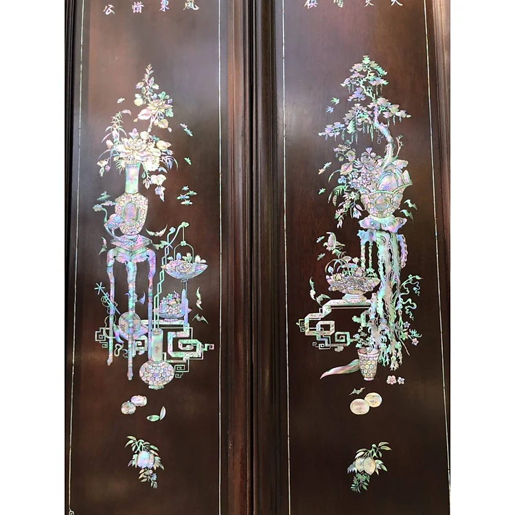 Four-panel painting, also known as Dong Bich painting, mahogany wood inlaid with red mother-of-pearl Singapore, size 31×117×4cm