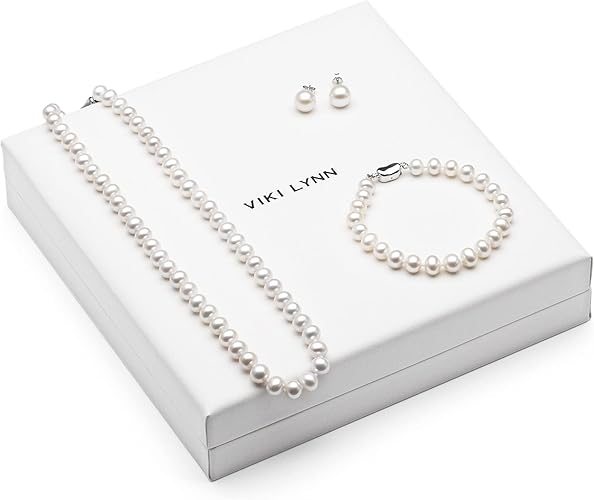 Freshwater Cultured Pearl Necklace Set Includes Stunning Bracelet and Stud Earrings Jewelry for Women - VIKI LYNN