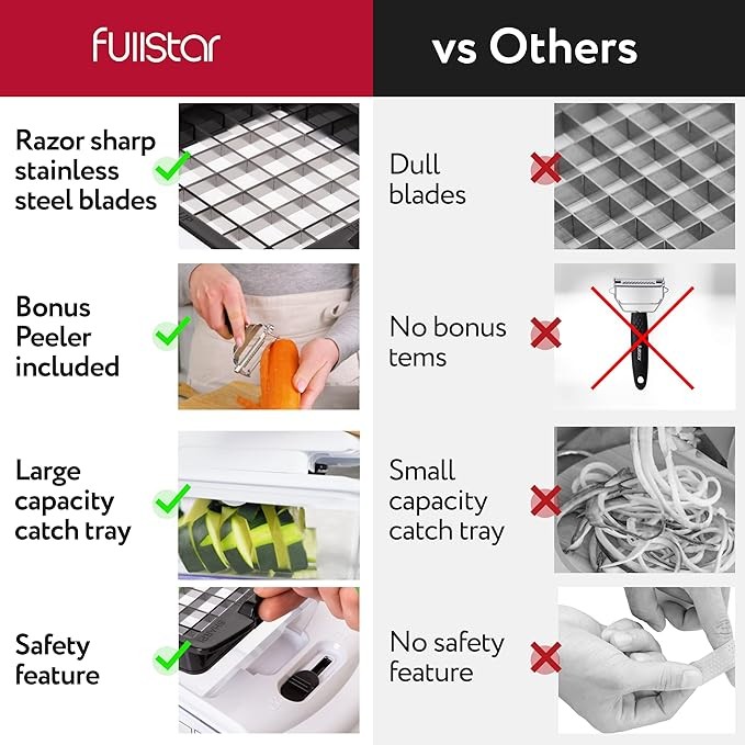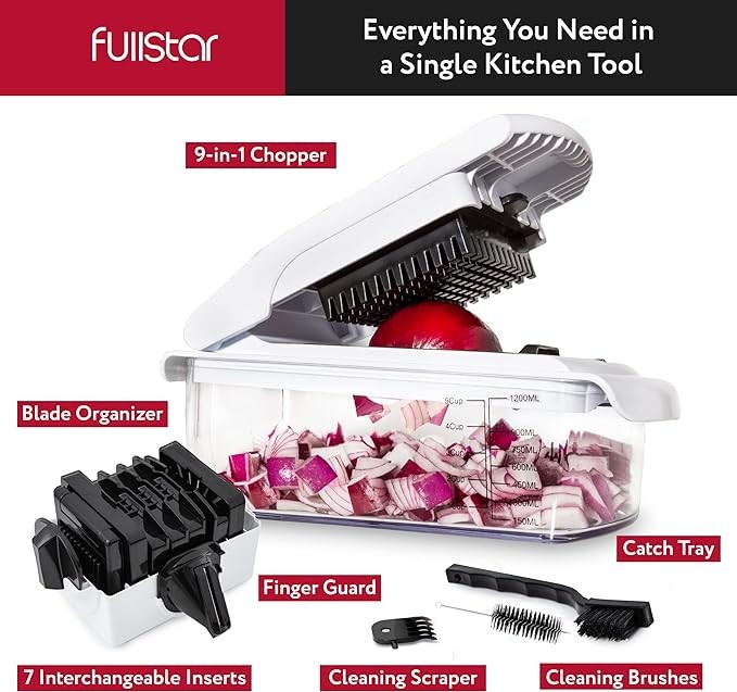 Fullstar Vegetable Chopper - Spiralizer Vegetable Slicer - Onion Chopper with Container - Pro Food Chopper - Slicer Dicer Cutter - (9 in 1, White)