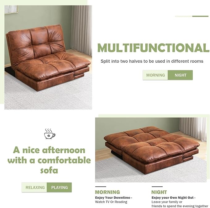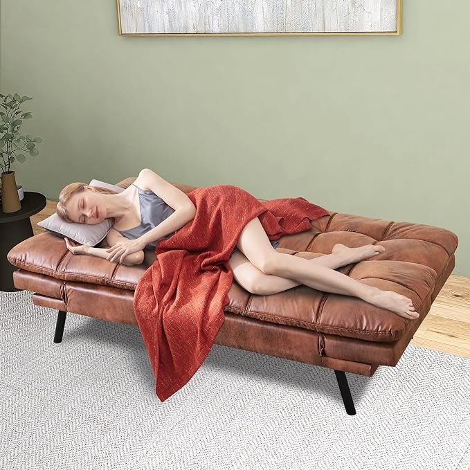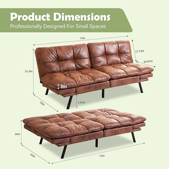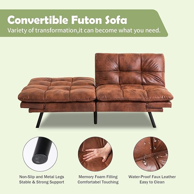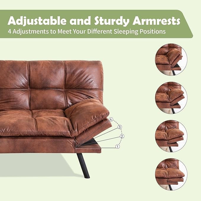 Futon Sofa Bed,Brown Futon Couch Small Lounger Sofa Foldable Loveseat with Armrests for Compact Living Spaces,Apartment,Dorm,Studio,Guest Room,Home Office
