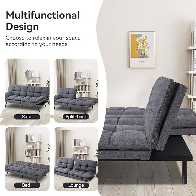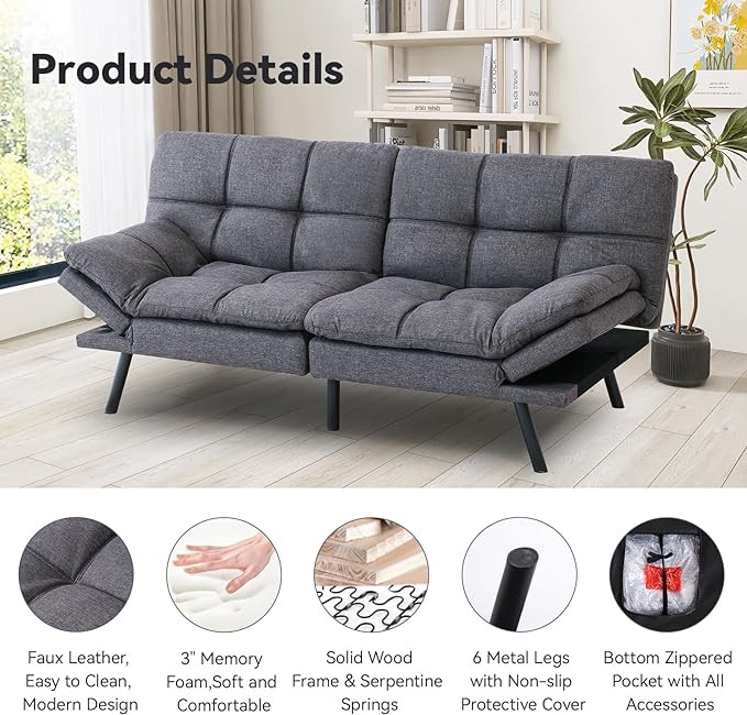 The couch is great, very easy to assemble, comfy so sit and lay on, but probably not for too many nights in a row since it’s not THAT soft, very firm. My only takeaway is when I align the seats up they are not “even” or aligned at all, one cushion is lifted just an inch barely more than the other side and as minuscule as this is, it was a bother , probably a slip up in the construction of it… other than that I did also have an issue with a screw not going all the way in because of something blocking it (which looked like fabric from the couch)