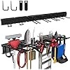 Garage Storage, Garage Organization, Wall Mount Garden Tool Organizer 48 Inches, Max 440lbs Adjustable Metal Hooks, Yard Shed Organizer Rack, Tool Holder for Hanging Rake Broom Mop Snowboard