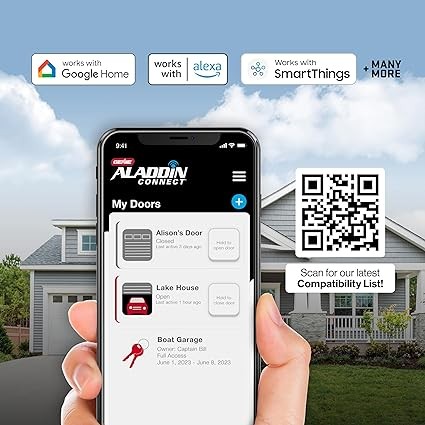 Aladdin Connect smart garage door opener, Works with Alexa and Google Assistant / Google Home and more (see full chart), so you can have the garage door open and close with your voice.