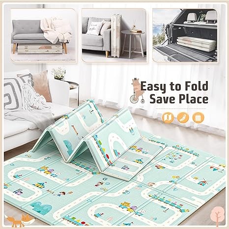 Gimars XL BPA Free 0.5 in Reversible Foldable Baby PlayMat, Waterproof Foam Floor Baby Crawling Mat, Portable Baby Playmat for Infants, Toddler, Kids, Indoor Outdoor Use (79 x71x0.5inch)