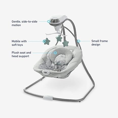 • Gentle side-to-side swaying motion soothes and comforts baby
