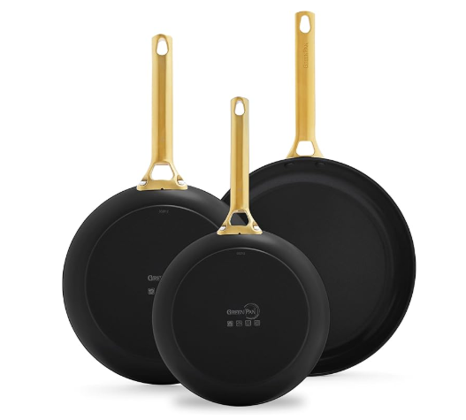 MaterialCeramic, PFAS Free Nonstick, Hard Anodized Aluminum, Gold-tone Stainless Steel Handles