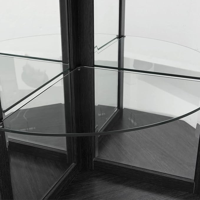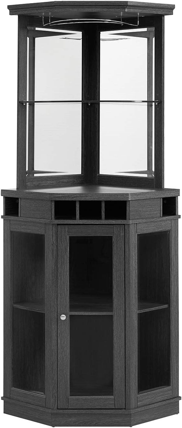 Home Source Corner Bar Unit 73" Charcoal with Two Glass Shelves, Built-in Wine Rack, | Storage | Living Room, Home Office, Kitchen, Small Space (Charcoal/Black, 73" corner bar)