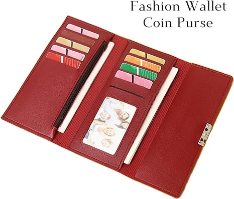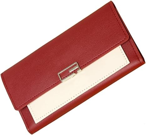 IFFANY Women's Leather RFID Organizer Wallet Card Holder with Zipper, Red