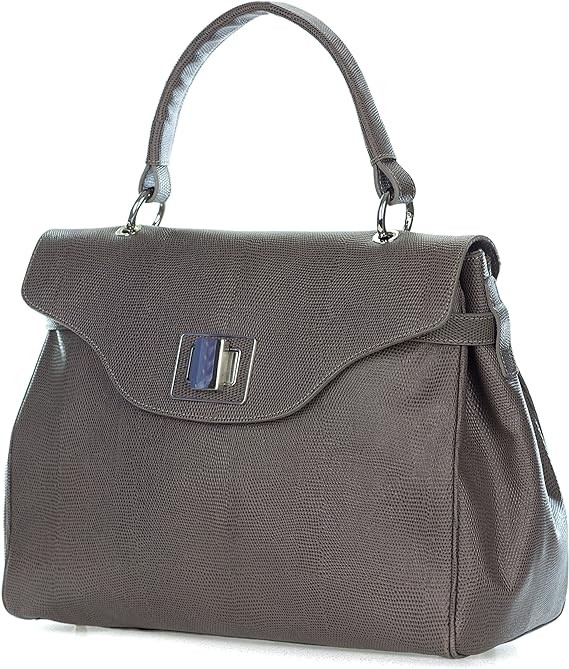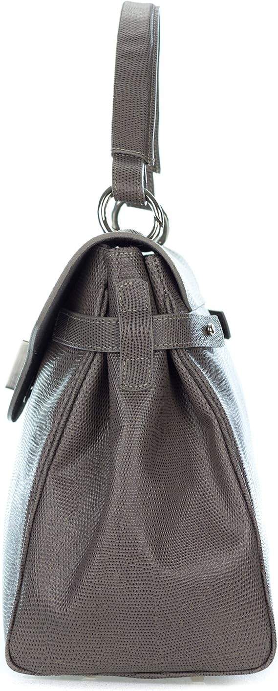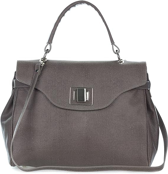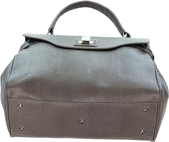 Italian Made Dove Gray Embossed Leather Carryall Tote Handbag