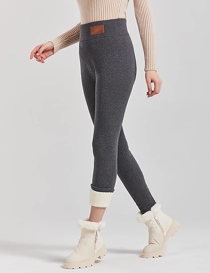 JK SUE JONES Winter Warm Soft Fleece Lined Leggings, Black and Dark Grey