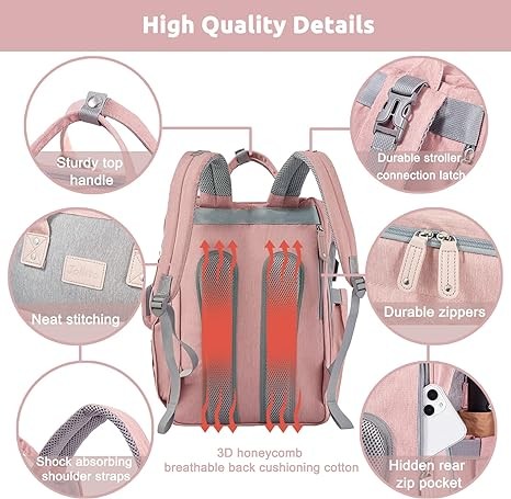JOLLITO Baby Diaper Bag Backpack with Changing Station, Large Capacity, Stroller Straps and USB Charging Port, Baby Registry Search for Boys & Girls