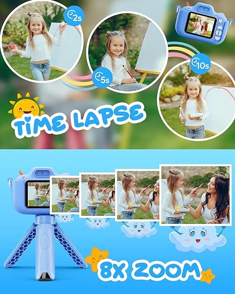 Discover the incredible potential of your child's creativity and visual skills with our amazing kids camera! With its colorful design, tripod, and the ability to record HD 1080P videos and take 20M HD images, it provides a safe and fun way to inspire your children to explore the world of photography and unleash their artistic and visual abilities. Give your kids the tools to capture the beauty of life and express their unique perspective with our incredible camera.