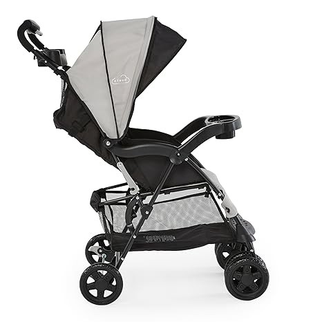 Kolcraft Cloud Plus Lightweight Easy Fold Compact Toddler Stroller and Baby Stroller for Travel, Large Storage Basket, Multi-Position Recline, Convenient One-hand Fold, 13 lbs - Slate Gray