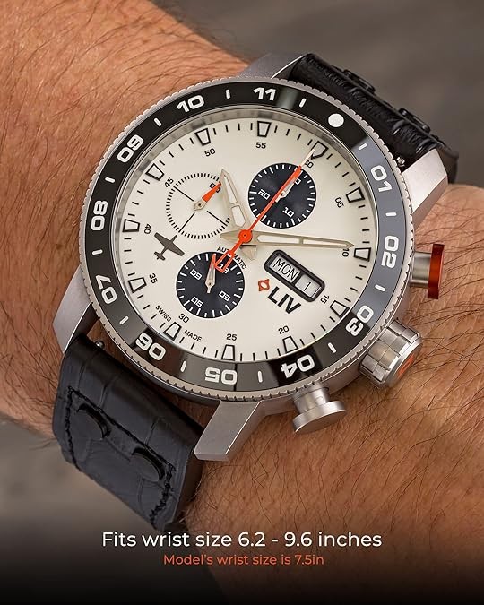 Raw high-grade titanium with a brushed finish and skeleton case-back, unidirectional 120- click polished black ceramic bezel ring, and screw-down crown with LIV logo enamel.