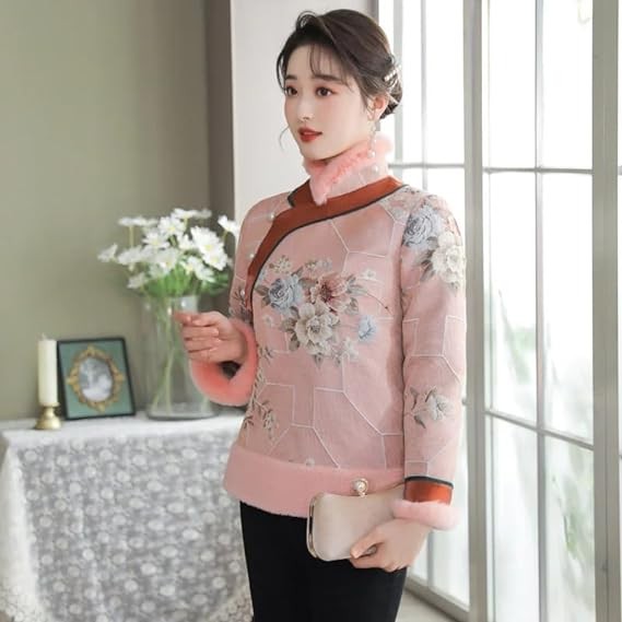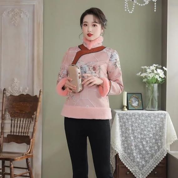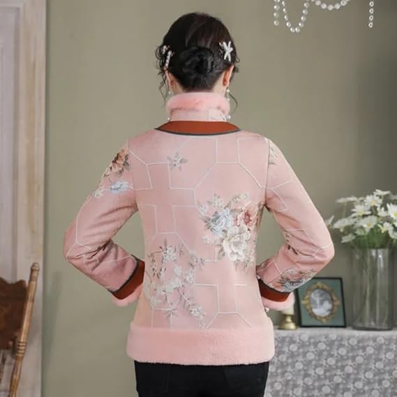 LIXINGHEITANG Winter Chinese Style pink8 Suit Coat Women Collar Padded Jacket China Traditional Ethnic Clothing Outerwear