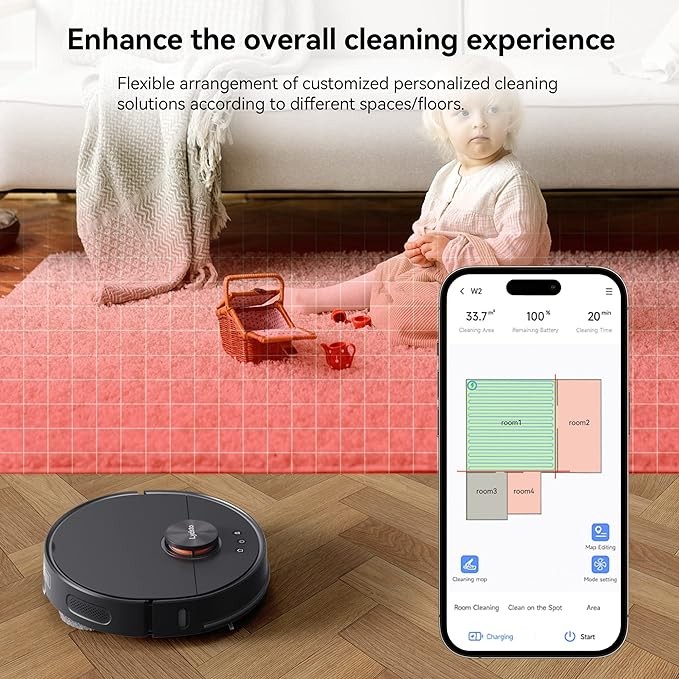 Lydsto W2 Robot Vacuum and Mop Combo, Auto Mop Cleaning and Drying,Self Refilling, Self Emptying,Robotic Vacuums with 5000Pa Suction, LDS2.0 Radar, Obstacle Avoidance, LED Display, WiFi, App Control