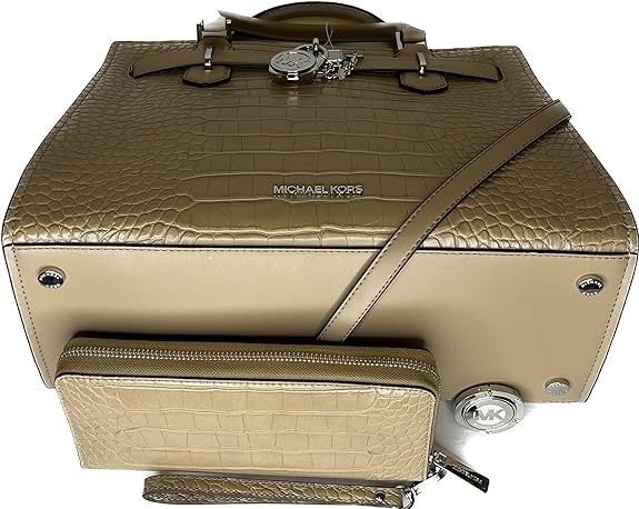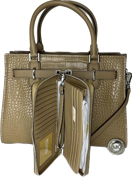 Michael Kors Hamilton MD Satchel bundled with Large Continental Wallet and Purse Hook