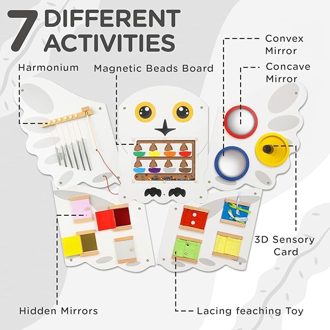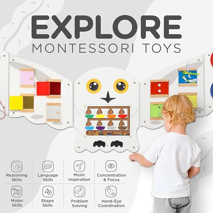 Monläurd® Owl Montessori Busy Board,Sensory Board,Educational Toys,Activity Cube,Wall Toys,Daycare Furniture,Playroom Furniture,Interactive Toys,Wooden Toys,Learning Toys,Boys and Girls 6 M+