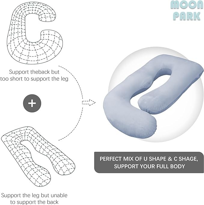 MOON PARK Pregnancy Pillows for Sleeping - U Shaped Full Body Maternity Pillow with Removable Cover - Support for Back, Legs, Belly, HIPS - 57 Inch Pregnancy Pillow for Women - Grey