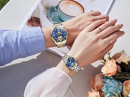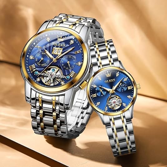 OLEVS Couple Pair Watches Set Automatic Mechanical Self Winding Dress Matching Watch for His and Hers Valentines Day Gifts