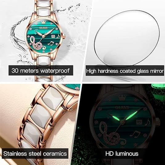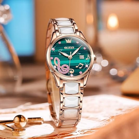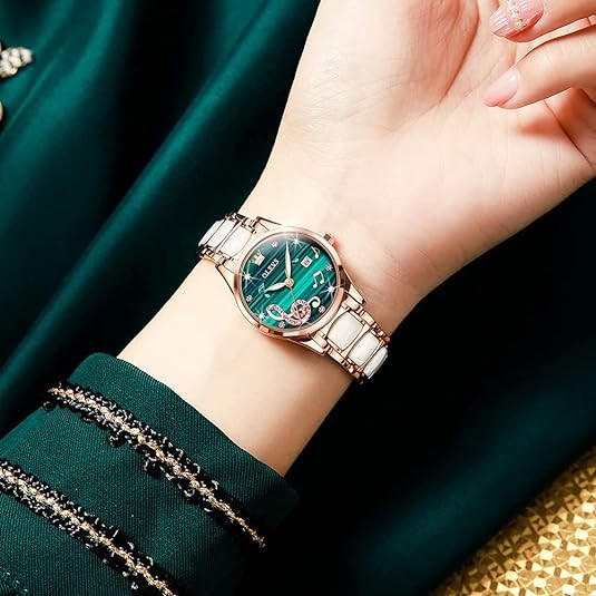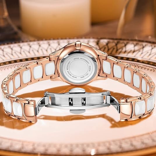 The white ceramic bracelet is very stylish with rose gold, and the ceramic strap is suitable for people with metal allergies. Ceramic straps are not as cold as metal straps, and the watch is comfortable to wear in winter.