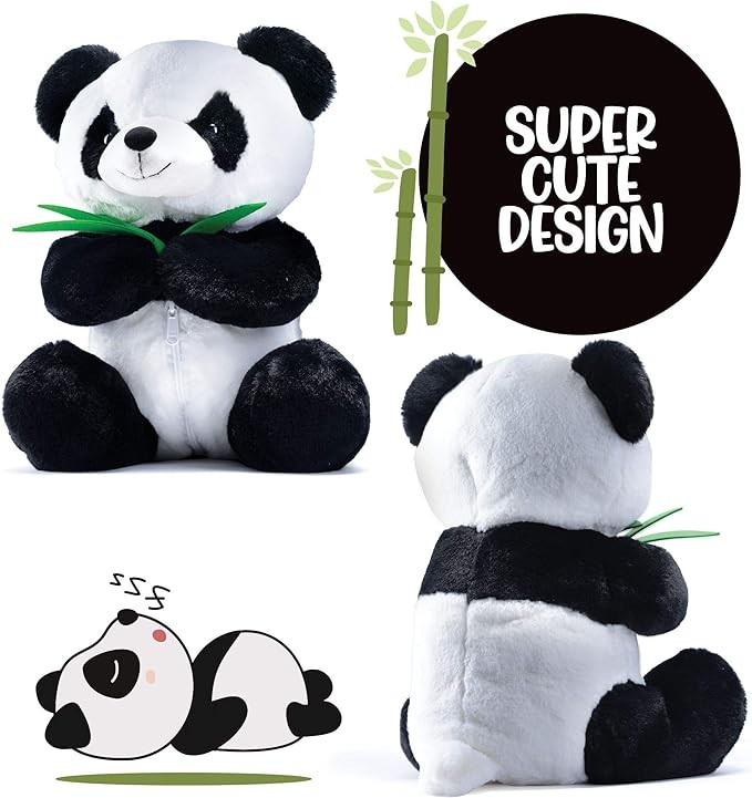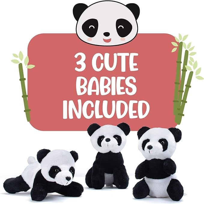 Prextex 13" Plush Panda Bear Zippered Carrier & 3 Cubs Plushies | Soft Panda Bear Stuffed Animal, Panda Plush Toy, Stuffed Panda Toys, Kid Toy, Pillow | Birthday Gifts, Panda Gifts for Girls&Boys