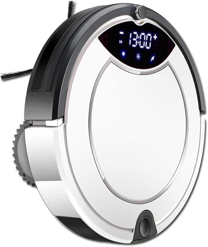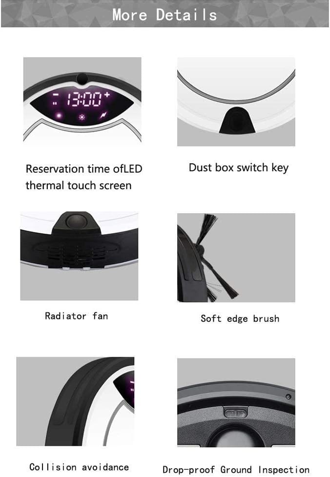 Robot Vacuum Cleaner Sweeping Robotic Robotic Vacuum, Intelligent Super-Thin Quiet Self-Charging for Pet Hairs Hard Floor Medium Carpet-Black (Color : White) (White)