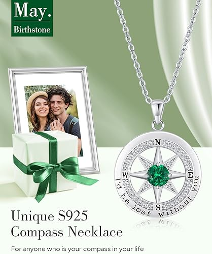 S925 Necklace Gift for Wife, Compass Jewelry Women Wedding Anniversary, Sterling Silver Girlfriend Birthday Gifts for Her, Girls Necklaces for Daughter Valentines Day Mom Mothers Day, I'd be Lost with