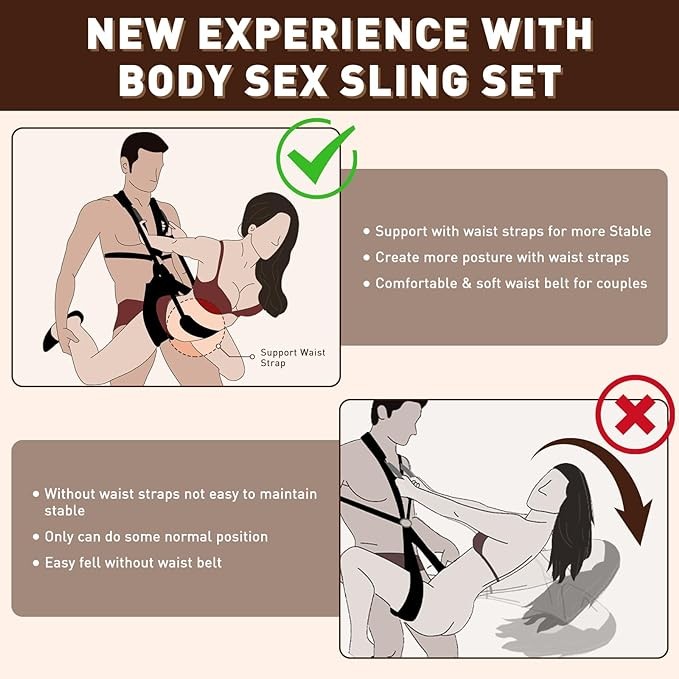 Sex Toys Sex Swing BDSM Bondage, Couples Sex Toys Sex Swings with Support Waist Straps, Adjustment Sex Sling Sex Restraints Straps Bondage, Adult Sex Toys for Couples, Holds Up 300Lbs