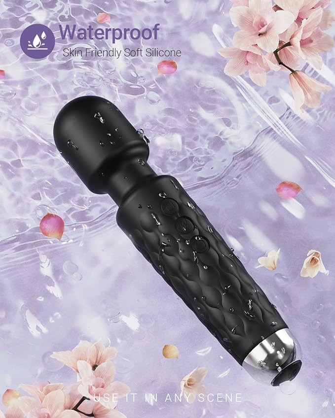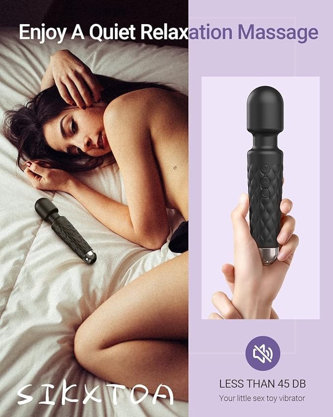 SIKXTOA Vibrator Wand, Female Adult Sex Toys, Vibrators for Her, Wand Massager, Clit Stimulator Sex Toy, Dildo, with 8 Speeds of Pleasure & 20 Patterns, Powerful, Waterproof (Black)