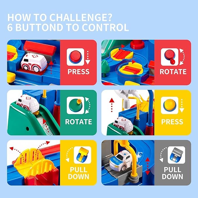 Guide the race toy cars through the obstacle.