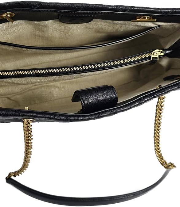Tory Burch 148250 Willa Black Diamond Quilted With Gold Hardware Women's Tote Bag