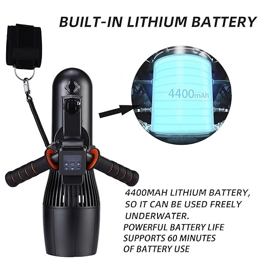 The TD02 is a compact, portable handheld scooter that doesn't compromise on performance. Dimensions are 16.1*11.4*8.2 inches. With its proprietary and efficient propulsion system, it can provide speeds of up to 4-7KM/H underwater. The TD01 is portable and comes with an airline-approved 98Wh battery. The 4400MAH battery capacity allows you to fly in the water for up to 60 minutes. The included charger can charge the TD02.