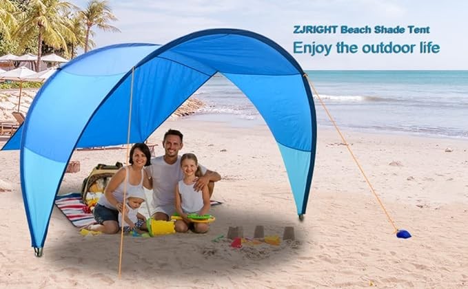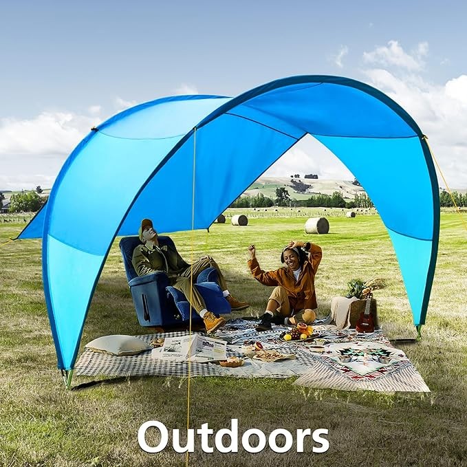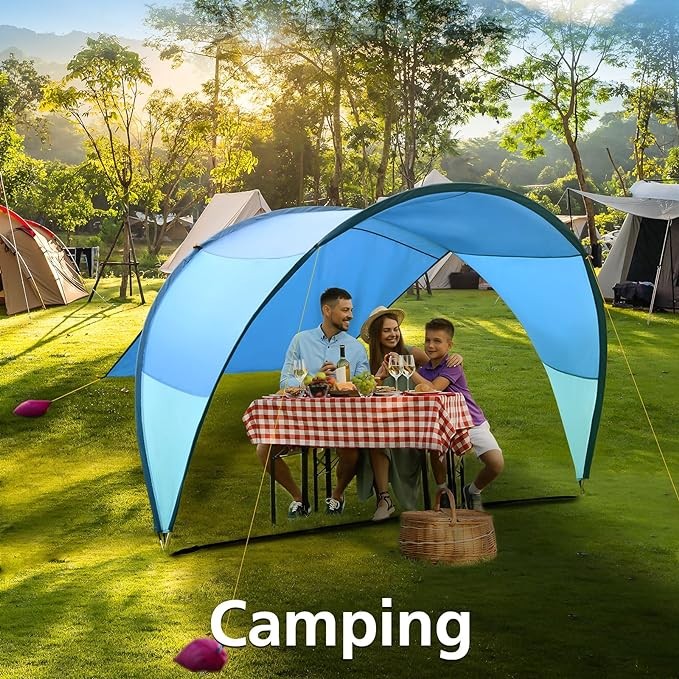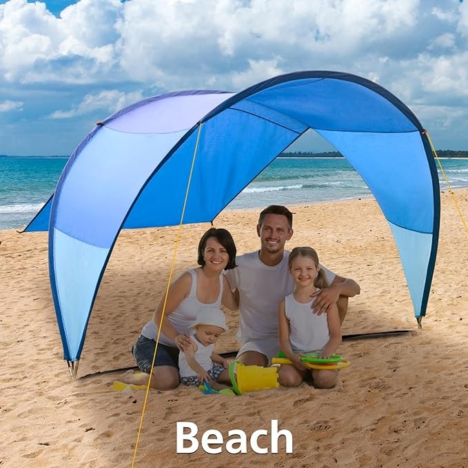 Upgrade - Patented design beach tent 10.5' x 11.5', suitable for 4-6 adults, awning rainbow sunshade, outdoor sunshade, suitable for camping, backyard, picnic - suitable for sand, grass... (Blue M) Br