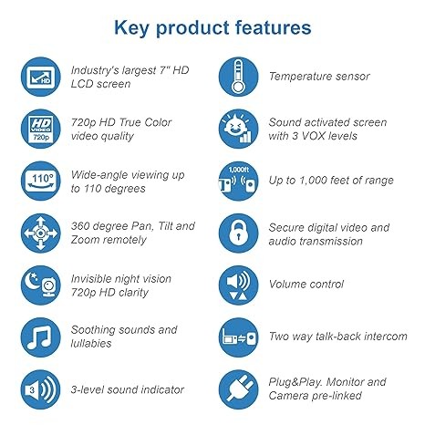 [Upgraded] VTech VM919HD Video Monitor with Battery Support 15-hr Video Streaming, 7" 720p HD Display,360 Panoramic Viewing, 110 Wide-Angle View,HD Night Vision,Up to 1000ft Range,Secured Transmission